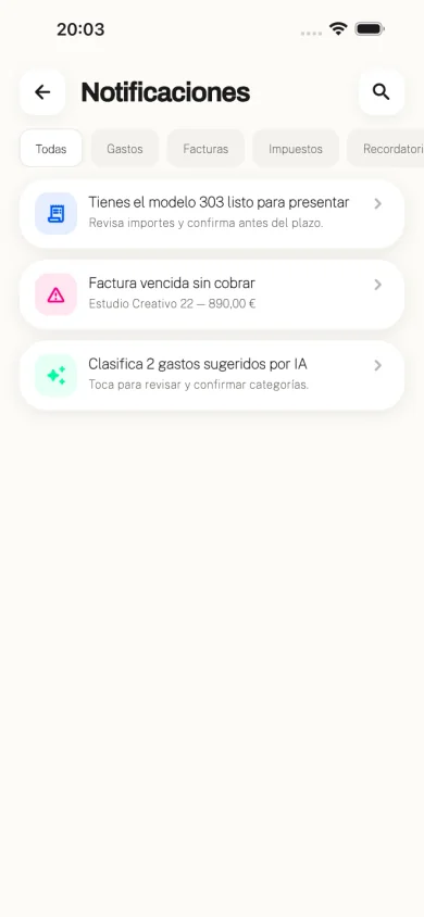 Gestiona facturas, gastos, impuestos y mucho más en una sola plataforma que integra IA, banca, email y estadísticas.