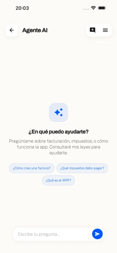 Consulta dudas tributarias, interpretación de la legislación española o cómo sacar partido a FacturaFácil. Cruza normativa vigente con el contexto de tus datos para responder acorde a tu caso.