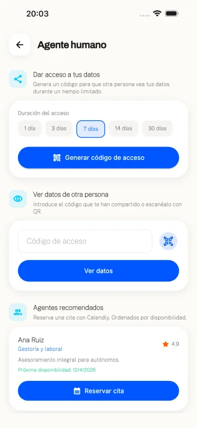 FacturaFácil es 100% independiente de las gestorías. Puedes invitar a tu asesor de siempre a la plataforma de forma gratuita, y si en algún momento quieres cambiar de profesional, puedes hacerlo sin perder ni migrar tus datos. Si no tienes gestor y lo necesitas, también tienes un listado de gestorías independientes recomendadas.