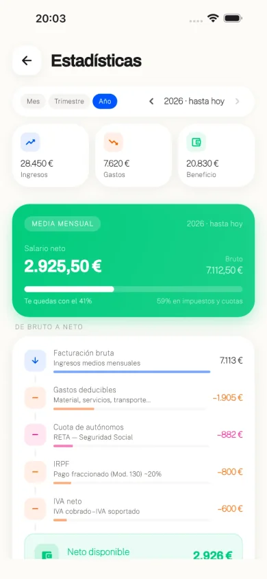 Crea facturas, añade gastos y gestiona tus datos aunque no tengas cobertura. Todo se guarda de forma segura en tu dispositivo y se sincronizará automáticamente cuando recuperes la conexión.